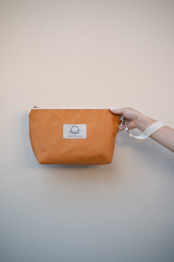 Material: Cotton wristlet, waterproof awning fabric, zip